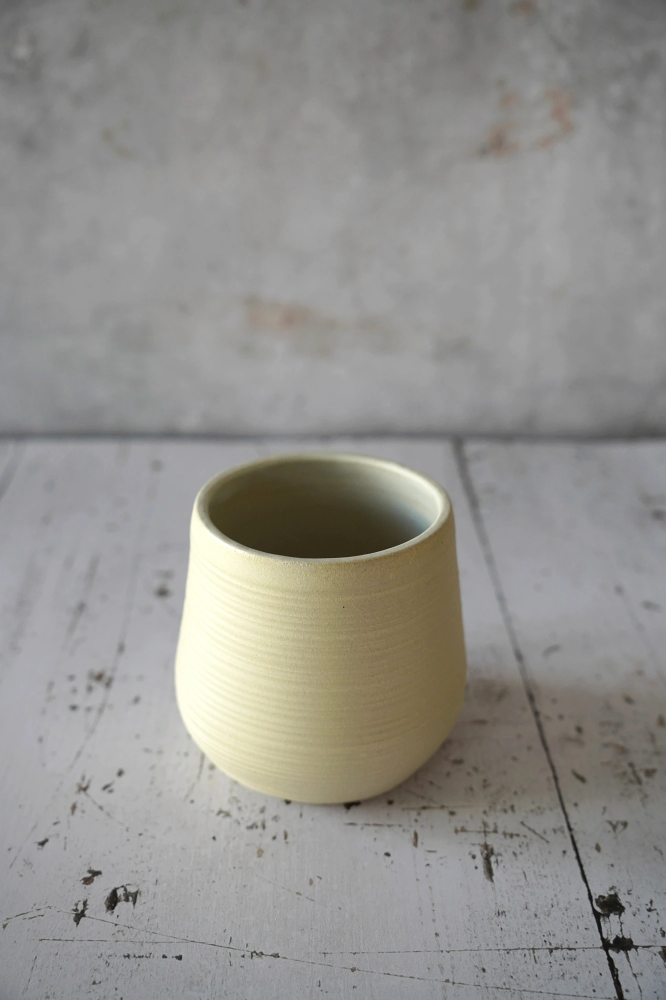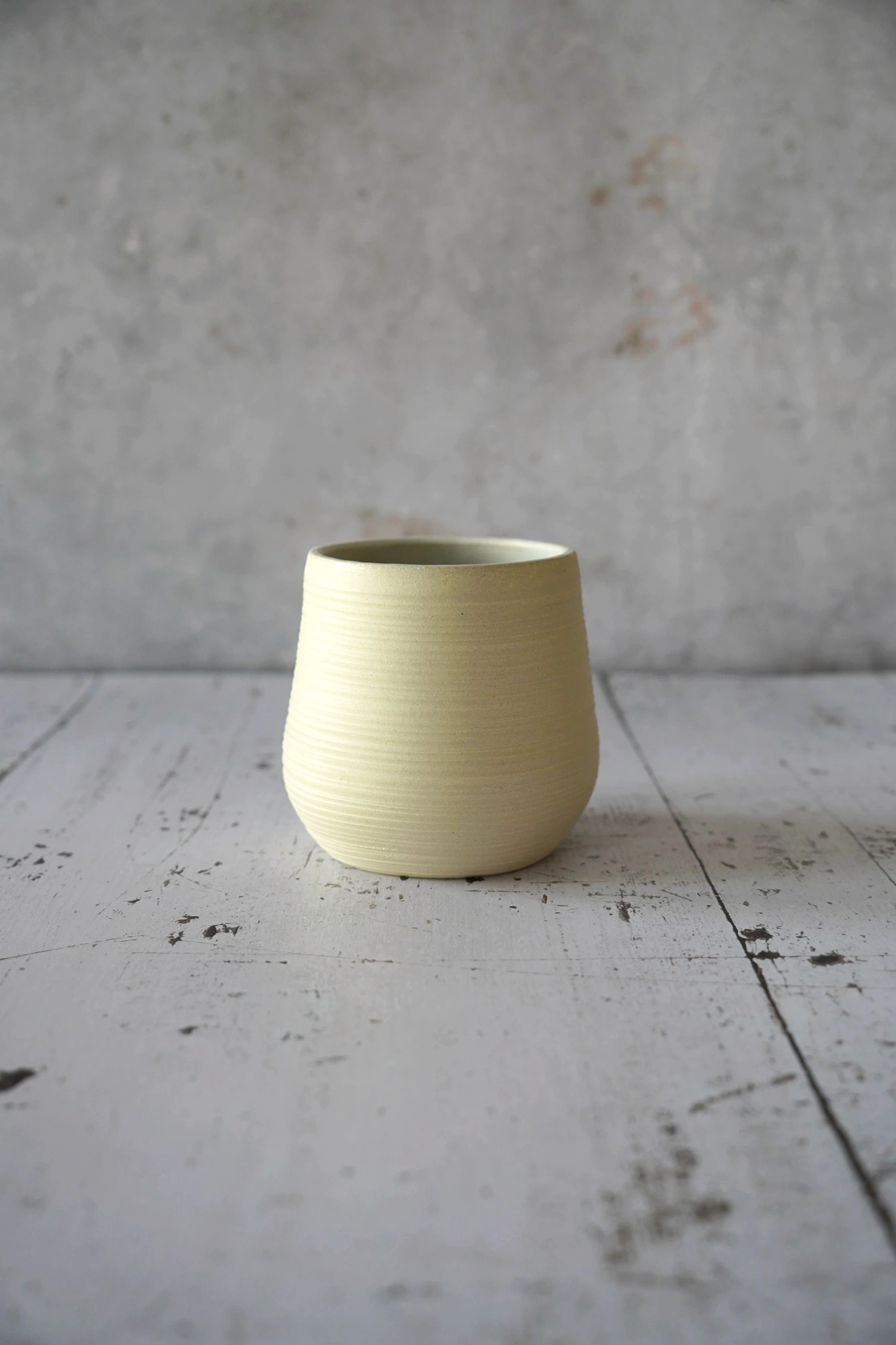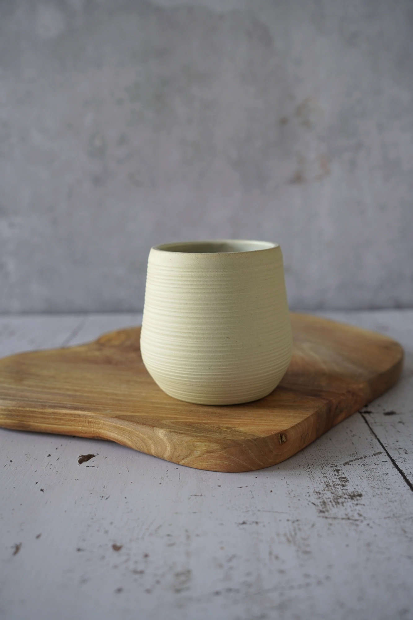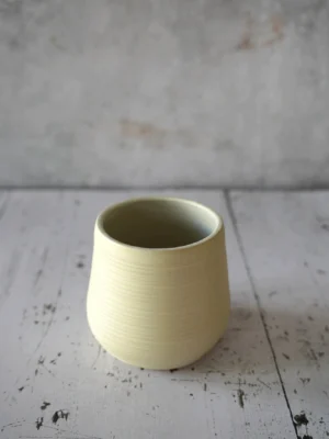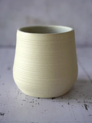 Deze unieke handgemaakte cup heeft een heel natuurlijke uitstraling, met een voelbare ribbel. De puurheid van de klei neemt de bovenhand